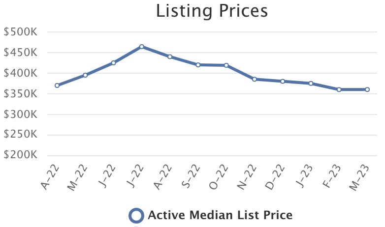Or 2. I view it from the peak in July at $464k. Since then, the median list price is down a whopping 22.5%.