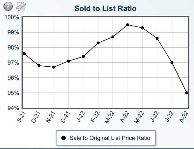 Last is the Delray beach real estate Sold-to-List price. It peaked in April at 99.5%. Back then, sellers were getting almost full list price contracts. But then it fell off a cliff. In August it crashed to 95%.