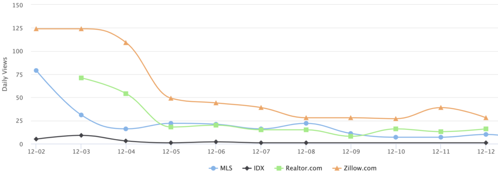 I stand by my viewpoint of “the first day your home is on the market is the day with its highest value. After that, the value erodes in the marketplace – especially as inventory continues to rise. Don’t believe me? Look at this of a recent listing. The first three day had excess of 50 views per day. After that it dropped…