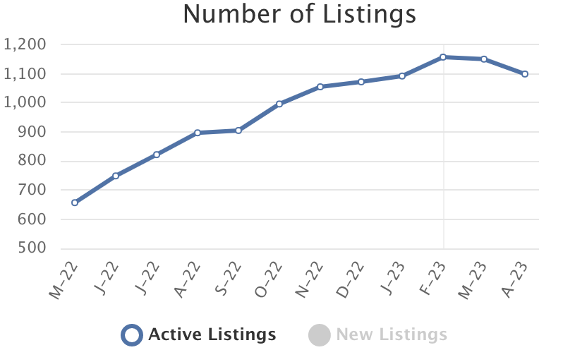 Next chart is the Number of New Listings. It’s the same as above. It fell and in April new listings are down 5.7%.