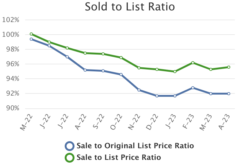 Several months back it fell. As you can see it hit 92% and 96%. That shows weakness in sellers. But we’ve seen this bottom forming, and it looks like it’s going up now. And if that holds, that good for sellers. With less inventory on the marketplace and listing prices starting to stabilize, sellers are starting to negotiate less.