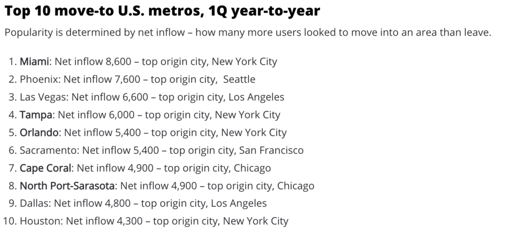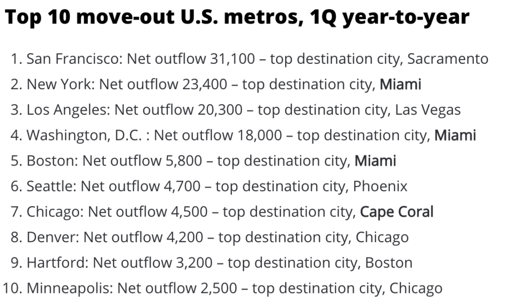 The next chart is the Top 10 Move Out Of. The numbers are staggering. Have a look…