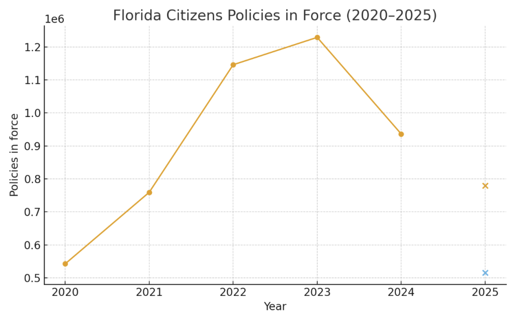 Citizens ballooned for years as private insurers fled Florida’s high-risk environment. By late 2023, it covered over 1.4 million policies becoming a safety net for homeowners who simply couldn’t find coverage anywhere else.