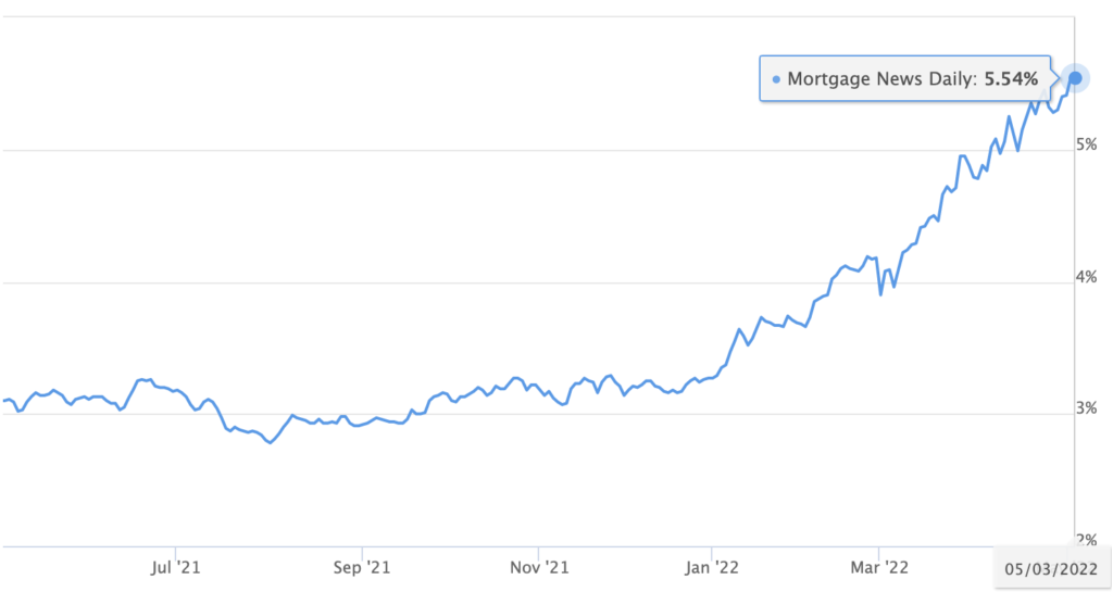 How often do you see rates rise over 25% in 30 days? Or 70% in the last year? These are extreme’s that will find their way back to normal levels. I’m not saying that interests will fall, but after a run-up like this, a cooling off period may be ahead as the news about rising Fed Rate Hikes gets “less bad.” And this run up in rates is one more reason why the housing market cools in 2022.
