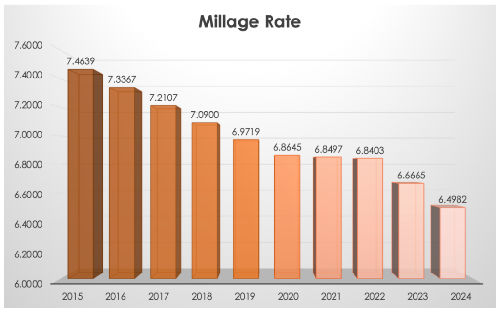 Look at that glorious chart below. Except for a few Covid years, your tax rate (millage) has been going down. It’s been part of The City’s longterm plan.