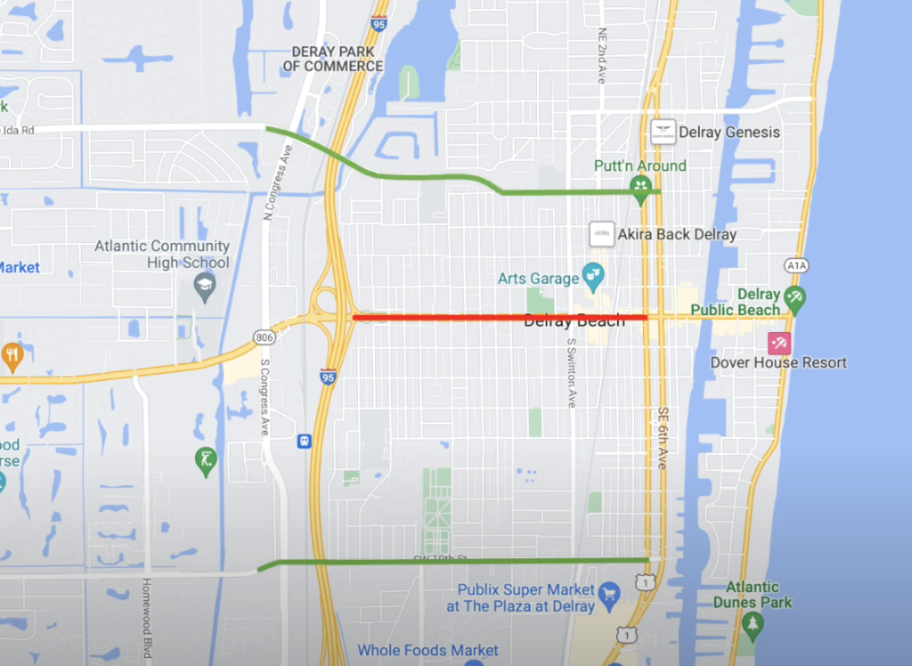 If you’re living in Delray Beach, this map of the city shows red and green streets – use the green streets to save yourself time…