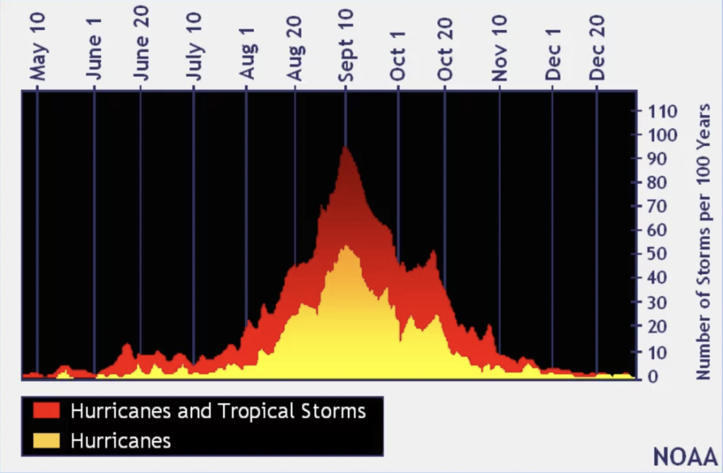Last, take a look at the image below. This shows the historic hurricane and storm activity in Florida. The next 70+ days are peak hurricane season. The general public knows this. So do home buyers. This keeps the majority of market participants on the sidelines as these buyers won’t plan to visit during the next 70 days or more.