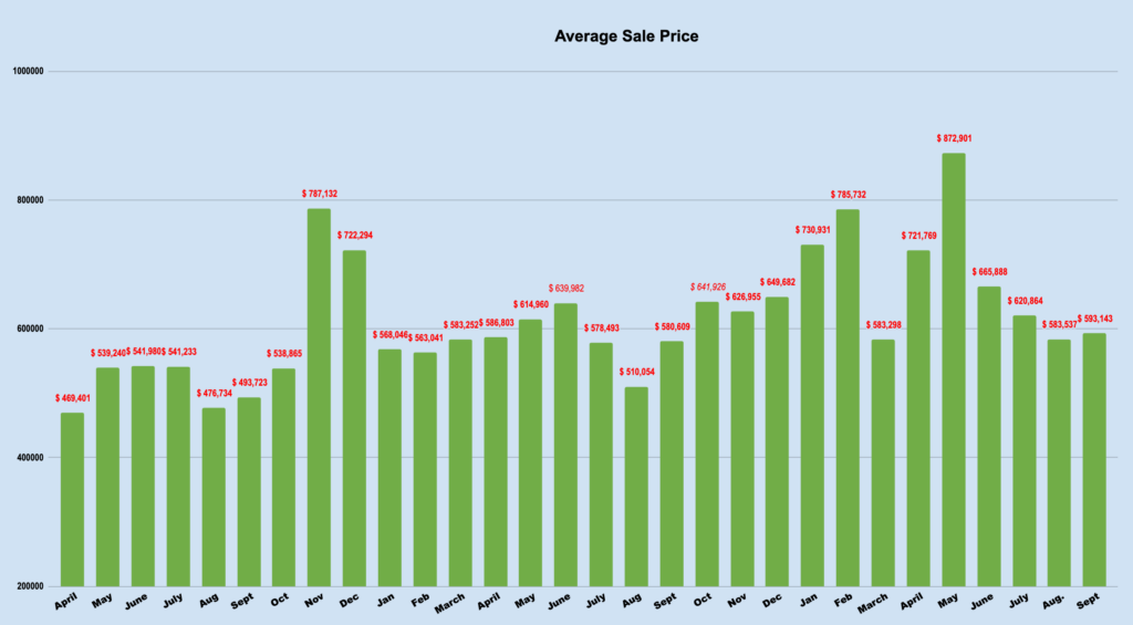 Now look at the average sales price. You can see sales price has risen over this two-and-a-half-year period Look at August, September, October. It rose from $476k to $576k. Look at August of 2022. Delray Beach real estate prices bottomed at $510k then raced higher the next three months. Two months ago in Augustβ¦ we’re starting to see a that trend continue.