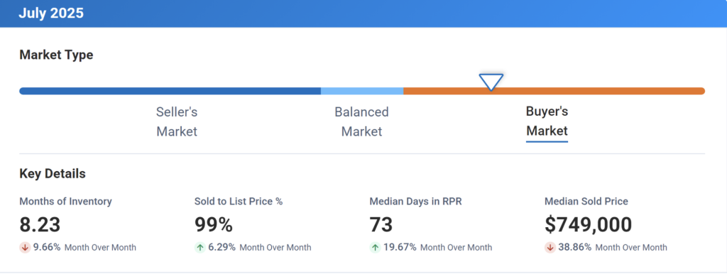 I find the Sold-to-List ratio interesting today. In May it was 89.9. For this report it stands at 99.9. This shows strength for sellers. I interpret this as sellers have finally woken up to the buyers market and are pricing their homes more accurately. Instead of having a huge gap in this metric, it’s tightening. So, there’s less negotiating on prices as they are more market-reflective.